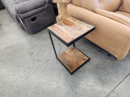 - Home & Garden >Furniture >Tables > Modern Rustic Side Table/Lap Top Table/C Table. Solid Wood and Black Steel